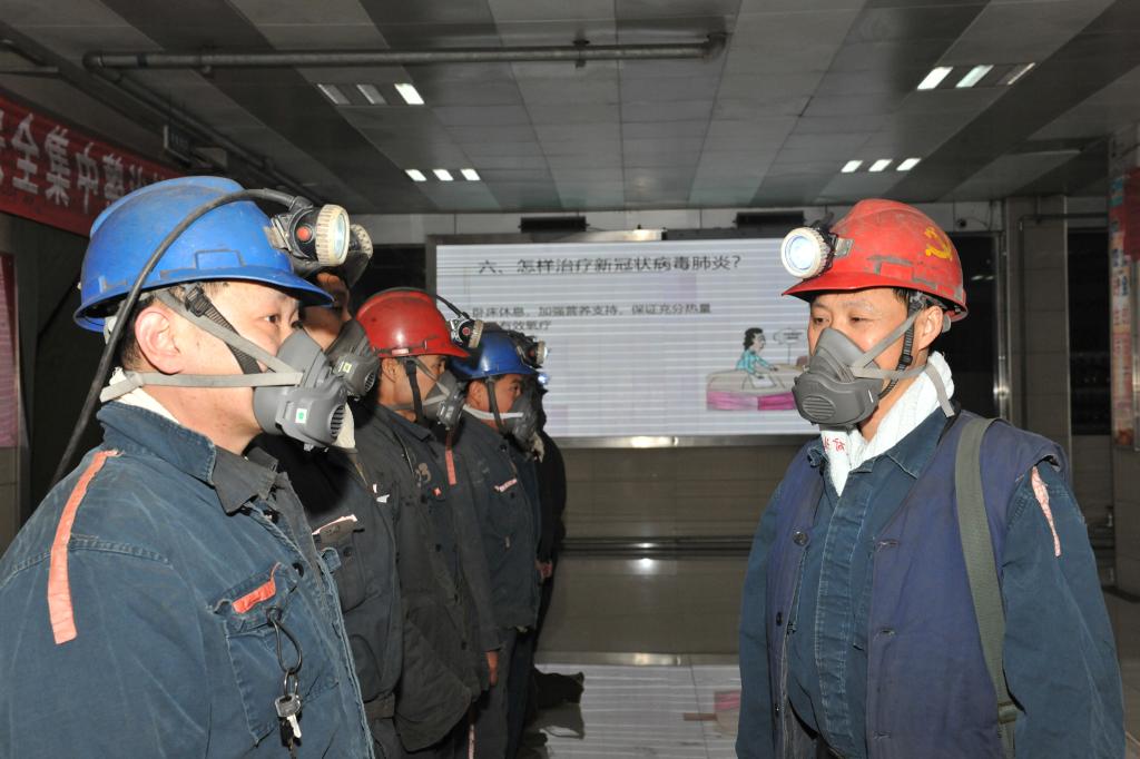 “大家工作期間嚴禁摘口罩,把工作服扣好不要著涼,特殊時期大家要照顧好自己的身體,這樣才能多出煤,支援礦井建設”綜采一區區長李德彥在班前會上關切的告訴每一名職工。