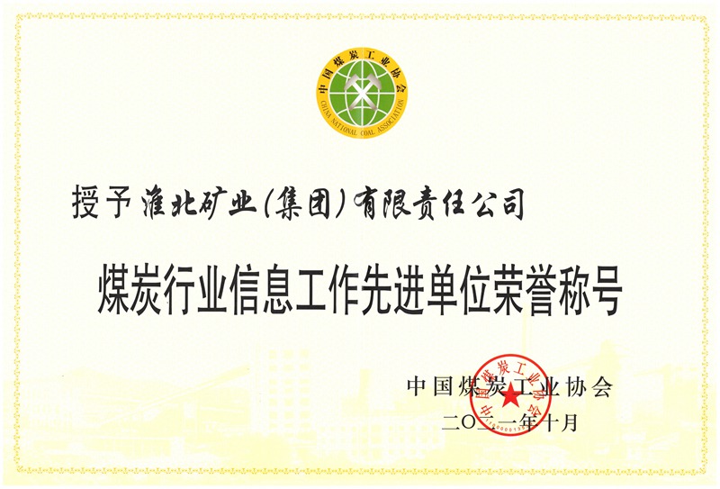 淮北礦業集團榮獲“2020-2021年度煤炭行業信息工作先進單位”稱號