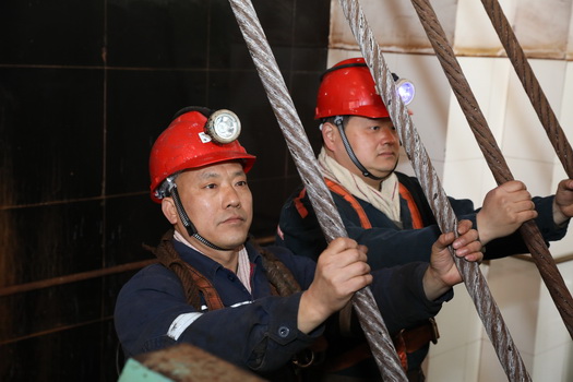 “日常檢修包括罐耳、驗(yàn)繩、罐道等一系列檢修項(xiàng)目,上午檢修新副井,下午檢修老副井,和平常一個(gè)樣。”宋清杰說(shuō)著話,忙碌的雙手并未停下來(lái),“假期我們總共4個(gè)人上班,除了對(duì)三個(gè)井筒進(jìn)行檢修外,還要負(fù)責(zé)對(duì)其他的地方進(jìn)行巡查維護(hù)。”