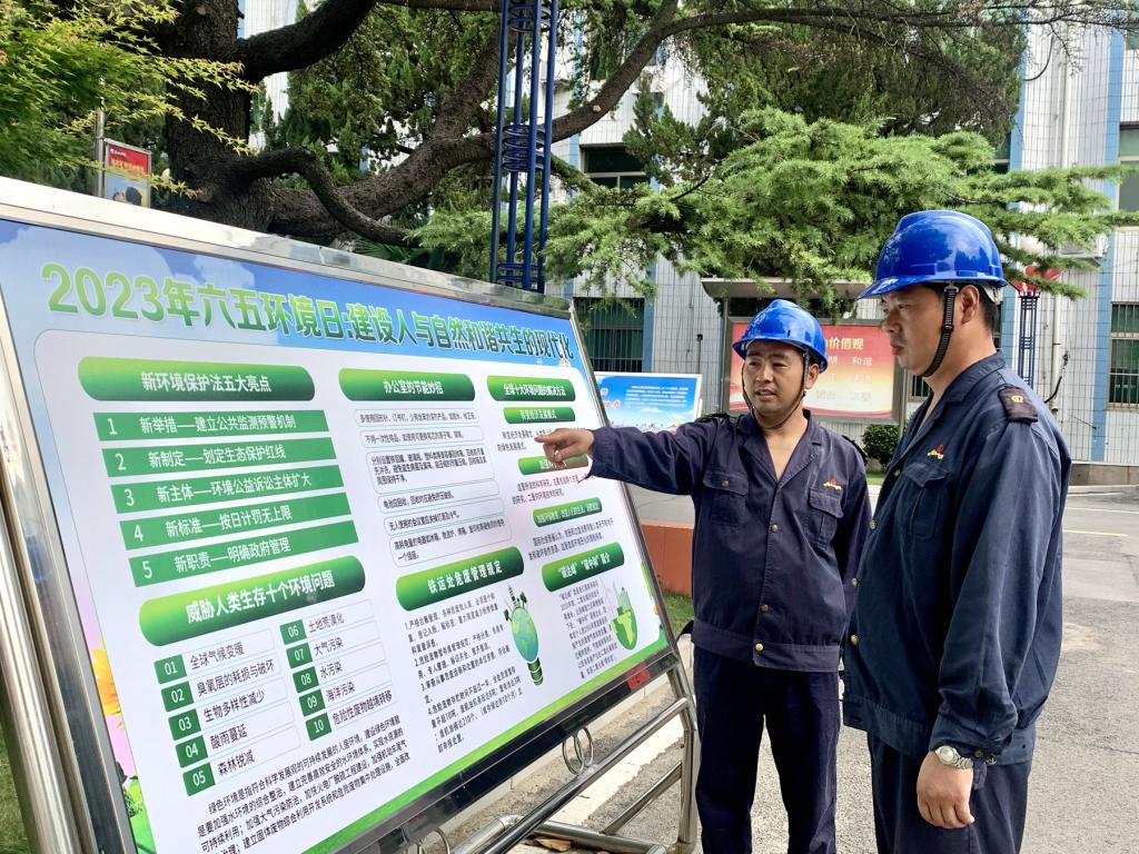 在第52個(gè)世界環(huán)境日到來之際,6月2日,童亭礦圍繞“建設(shè)人與自然和諧共生的現(xiàn)代化”開展了“6.5”世界環(huán)境日主題宣傳活動(dòng)。在礦工業(yè)廣場(chǎng)擺放環(huán)保宣傳牌板,宣傳環(huán)境保護(hù)法律法規(guī),傳播綠色礦山理念,增強(qiáng)職工參與環(huán)保工作的光榮感、使命感和責(zé)任感。