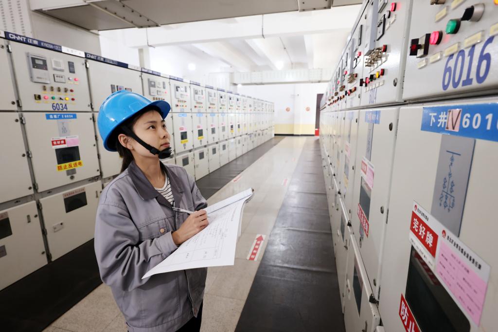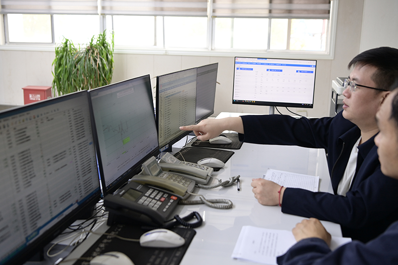 熱電分公司生產(chǎn)技術(shù)科科長劉國中在中控室檢查生產(chǎn)數(shù)據(jù)。