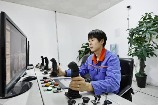圖為機(jī)電科機(jī)修工魏東正在加工配件