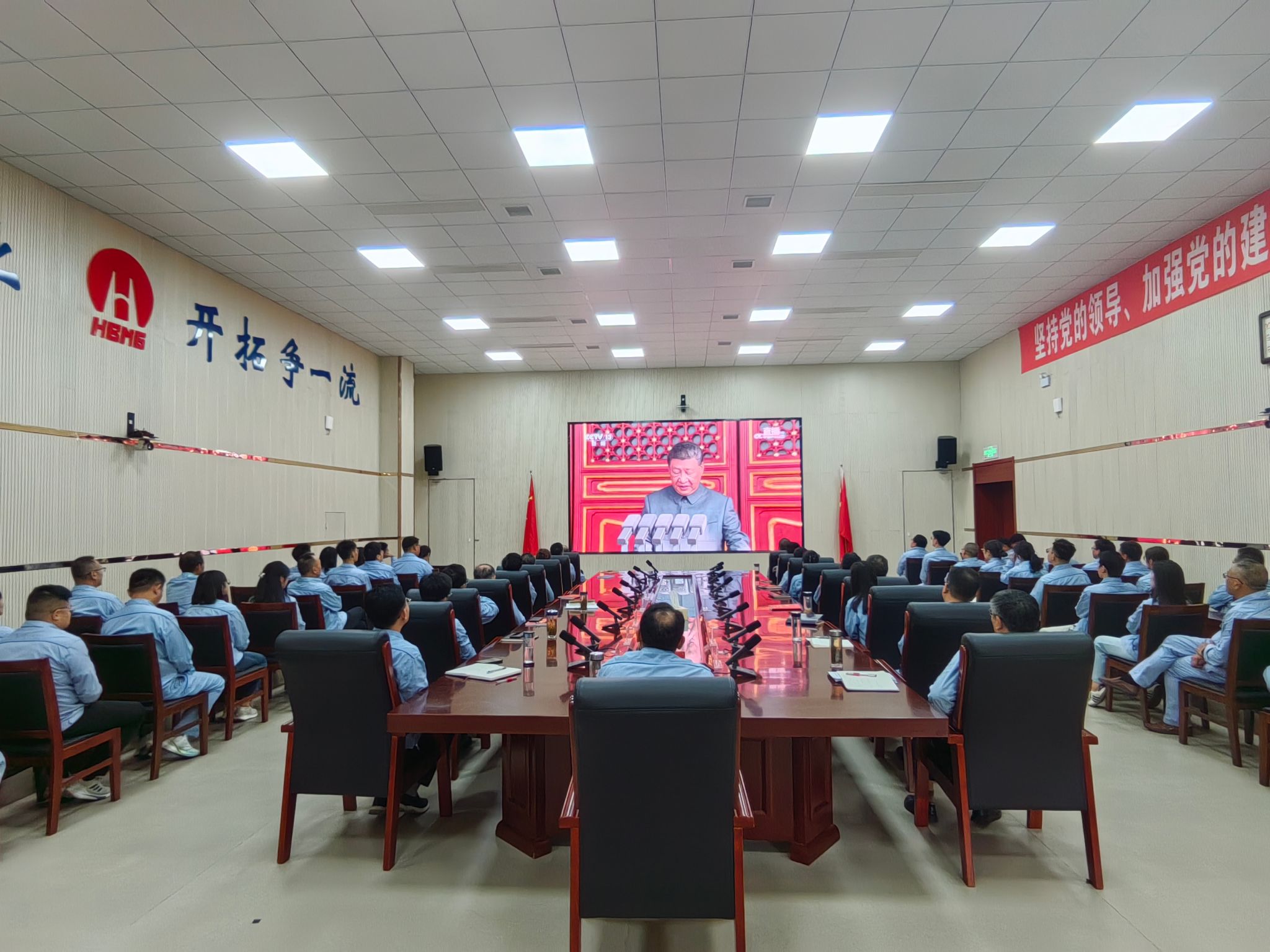 工程建設公司組織觀看紀念大會