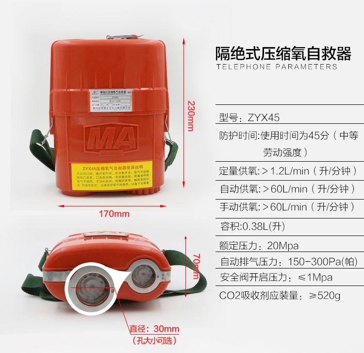 其中隔離式自救器又可分為化學氧自救器和壓縮氧自救器(我公司使用壓縮氧自救器)。